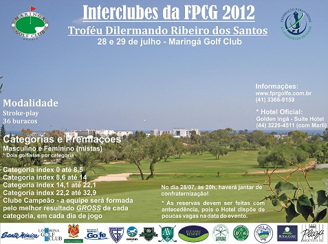 Começa no próximo sábado (28/07), no Maringá Golf Club, o Interclubes da FPCG 2012 com a presença de jogadores de oito clubes. Para a competição, a FPCG está disponibilizando transporte aos jogadores para Maringá.
