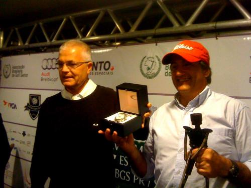 Roberto Perez reencontra seus bons dias de Golfe e vence o 25º Campeonato Estadual de Paraná e Santa Catarina na categoria Scratch. Na foto, recebendo o prêmio do representante da Oakley de Santa Catarina.